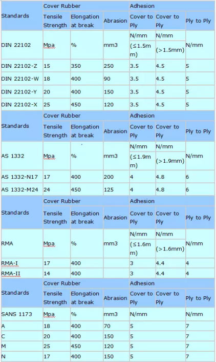 We can also produce international standard rubber conveyor belts, such as DIN22102, AS1332, BS490, RMA, JISK6322, SANS1173, etc.